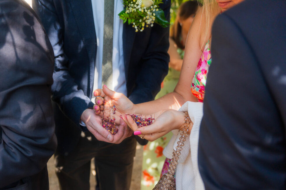 Die Luft voller Blütenblätter, wurde dann fröhlich angestoßen und jeder wollte dem frisch verheirateten Paar gratulieren.
