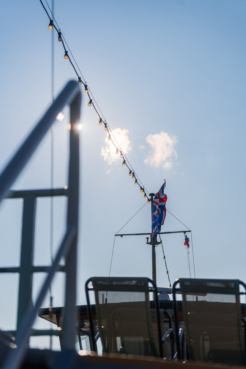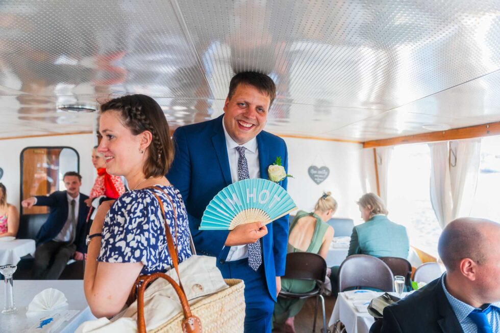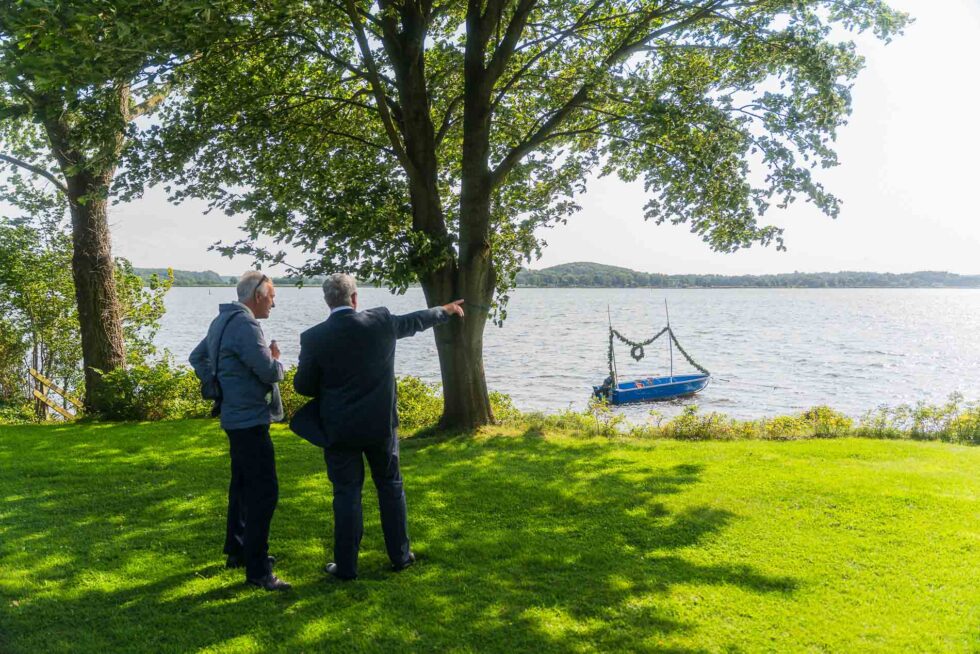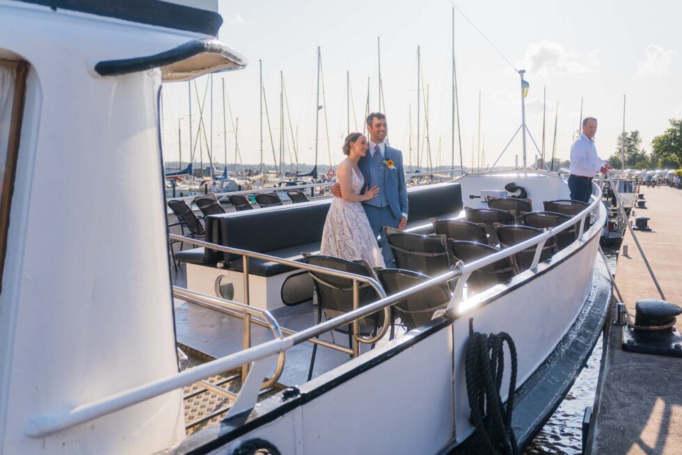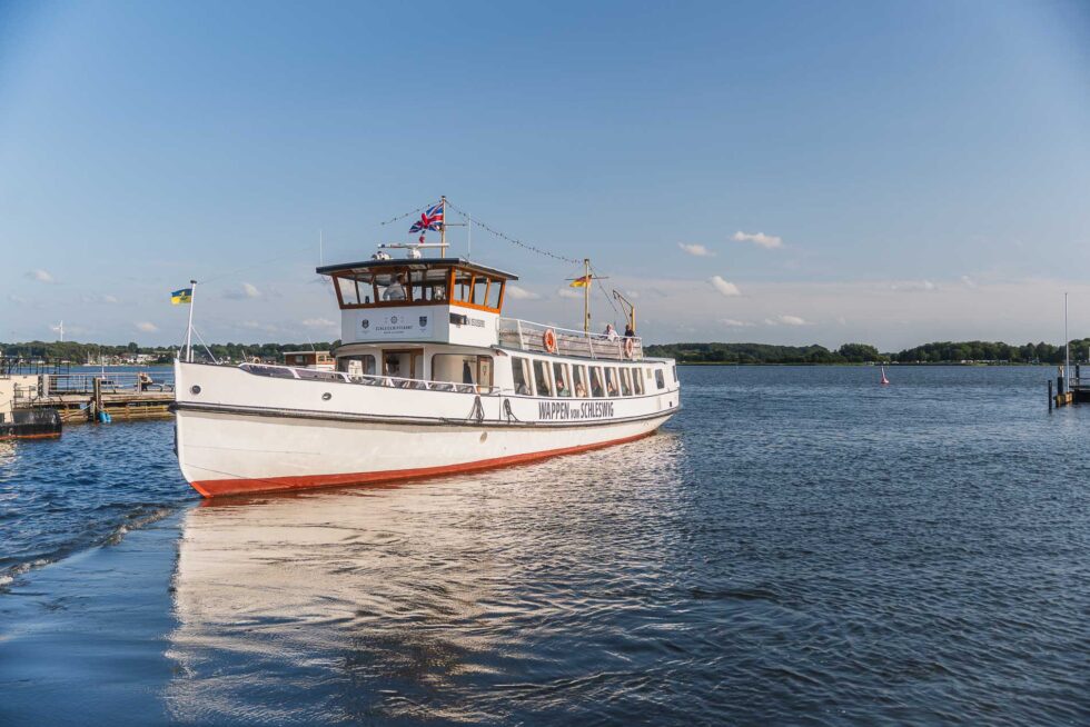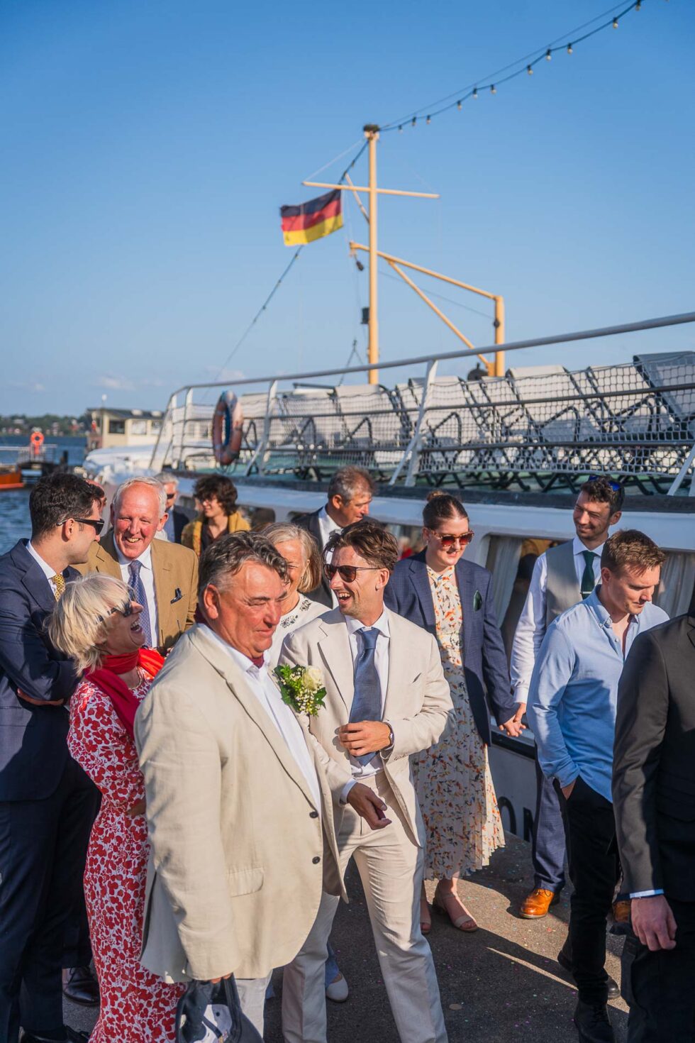 Und wenn der Bräutigam Fischer ist, bekommt er natürlich von seinen Kollegen und Freunden eine ganz besondere Überraschung: Mit dem kleinen privaten Boot schipperten die beiden über die Schlei zur letzten Location des Tages: der „Wappen von Schleswig“ – einem Schiff, mit dem schon Christians Opa an der Schlei entlang gefahren ist. Eine besondere Verbindung für die Beiden und eine wundervolle Gelegenheit, um den Gästen bei einer kleinen Rundfahrt die einmalige Umgebung zu zeigen!