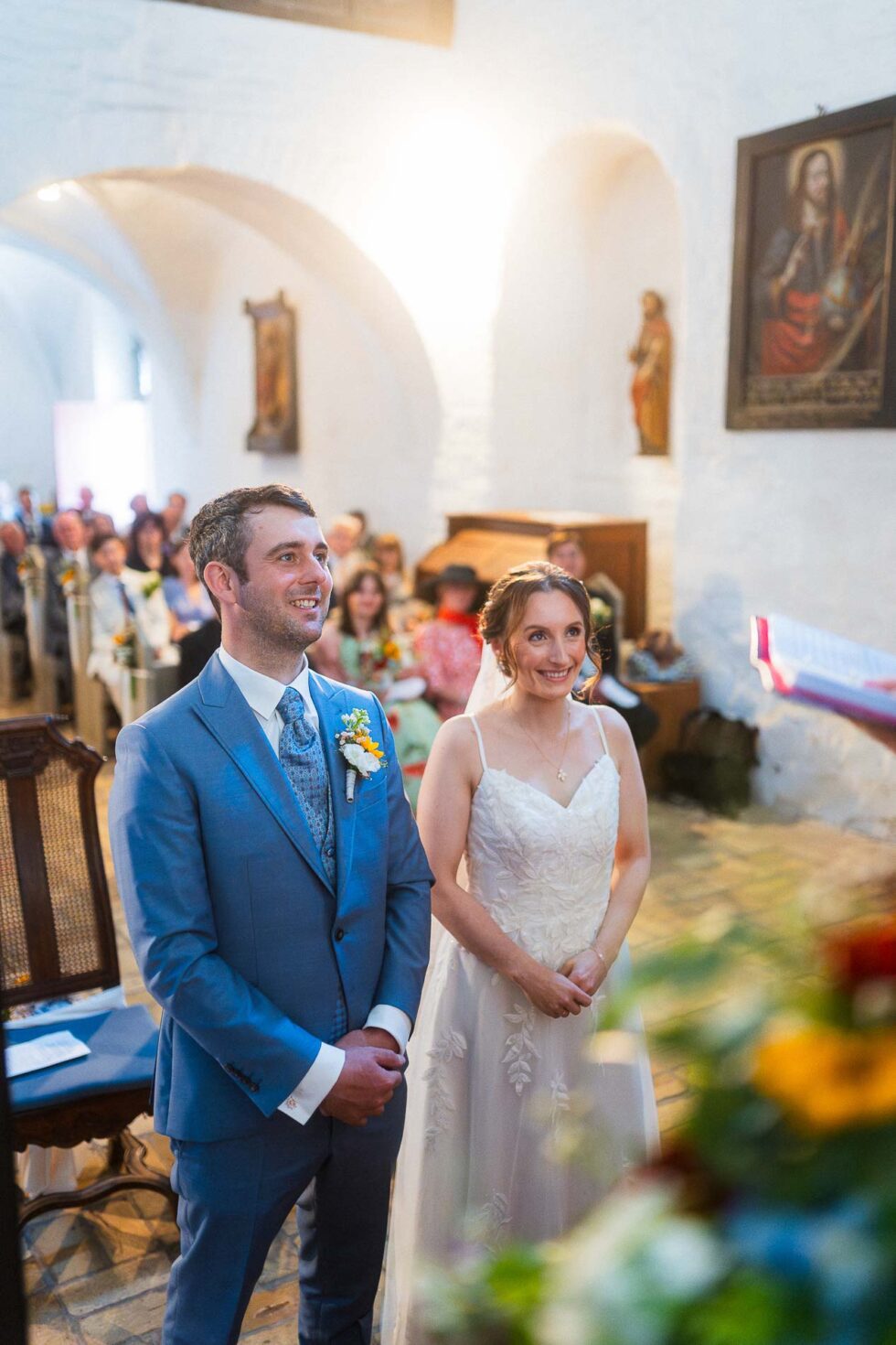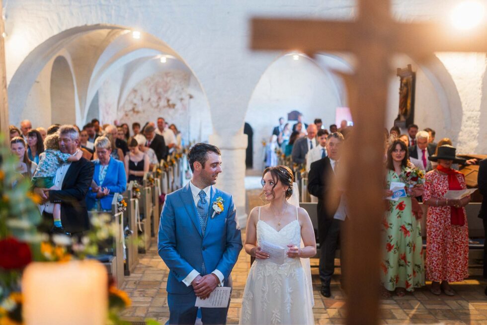 Ganz klassisch wurde Georgina von ihrem englischen Papa zum Altar geführt. Während der Trauung wurde aus vollem Halse gesungen und die komplette Gesellschaft und auch Georgina & Christian haben die Kirche richtig mit Leben gefüllt! Hier war nichts steif oder verkrampft – hier gab es einfach ganz viel Gefühl, Wohlwollen, Freude, Glück und Zärtlichkeit.