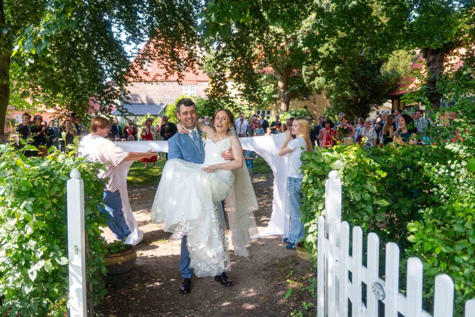 Einfach traumhaft war die Hochzeit von Georgina & Christian! Ich durfte die beiden als Hochzeitsfotografin bereits vormittags bei der standesamtlichen Trauung im historischen gotischen Saal in Schleswig begleiten. Sie waren so aufgeregt, aber das legte sich schnell. Und wie wunderschön war es, als sie beim Rauslaufen aus dem Standesamt von so viel mehr Gästen überrascht wurden, als sie geahnt hatten?!