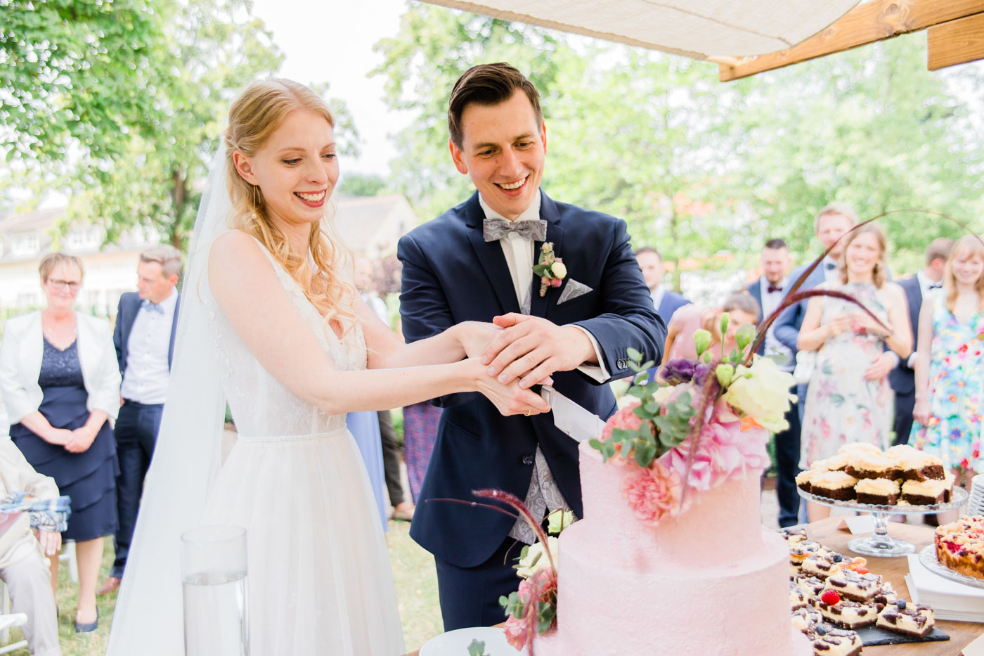 Die Hochzeitstorte, liebevoll gestaltet, wurde angeschnitten – begleitet von dieser leichten, fast sommerlichen Stimmung.