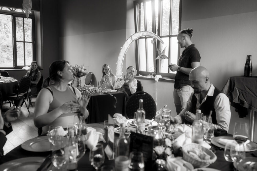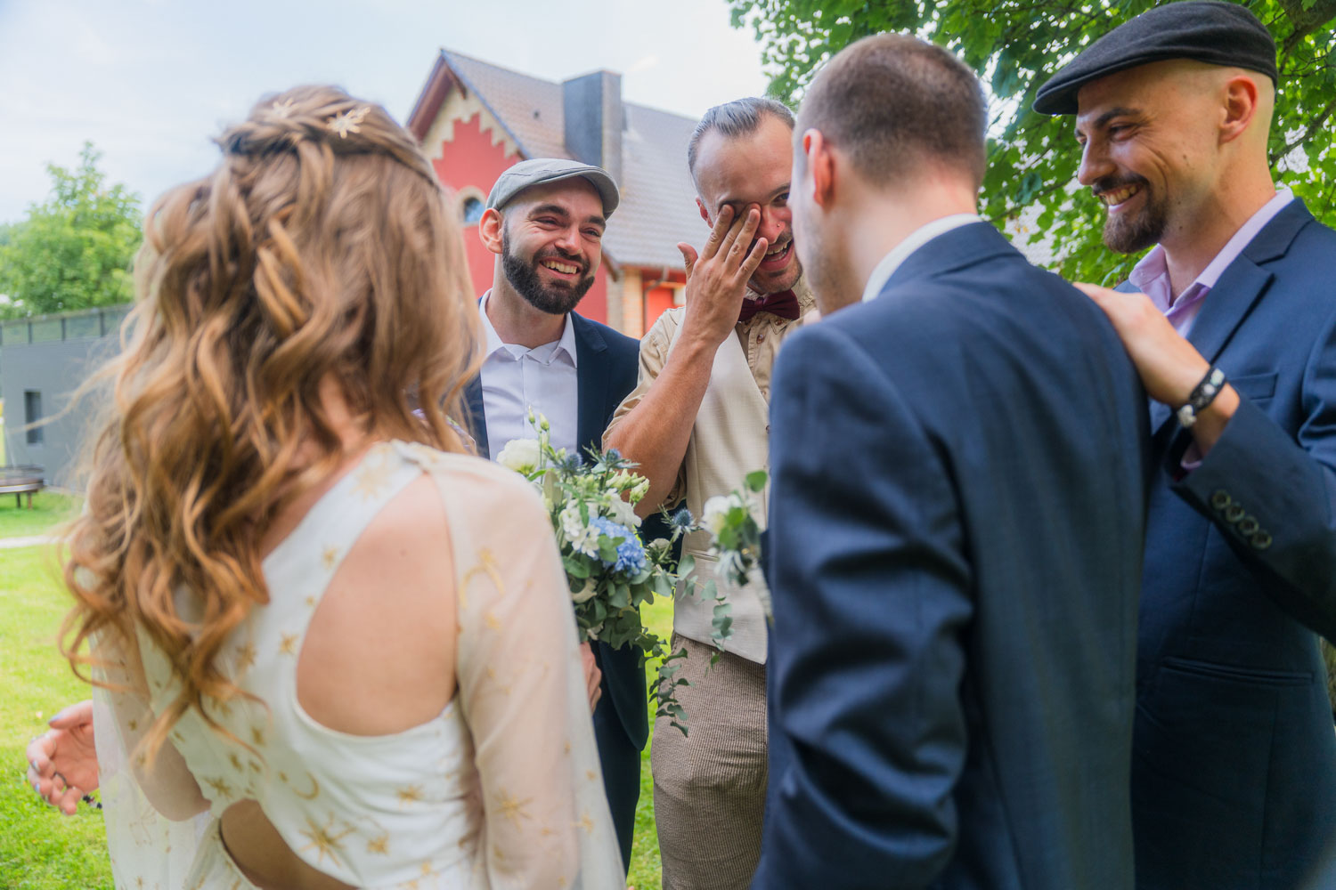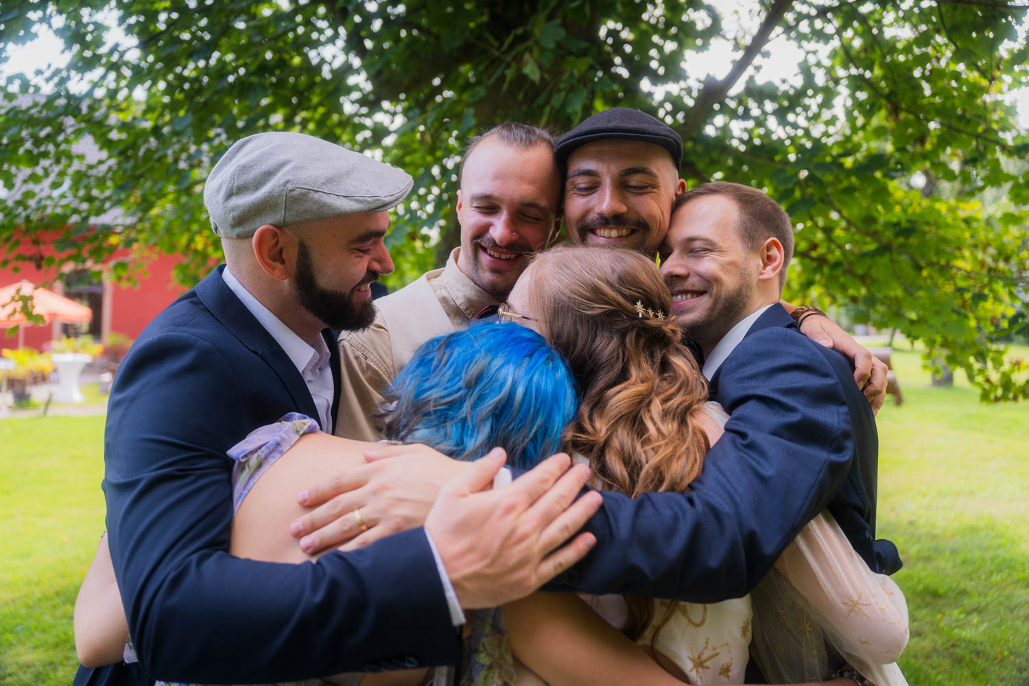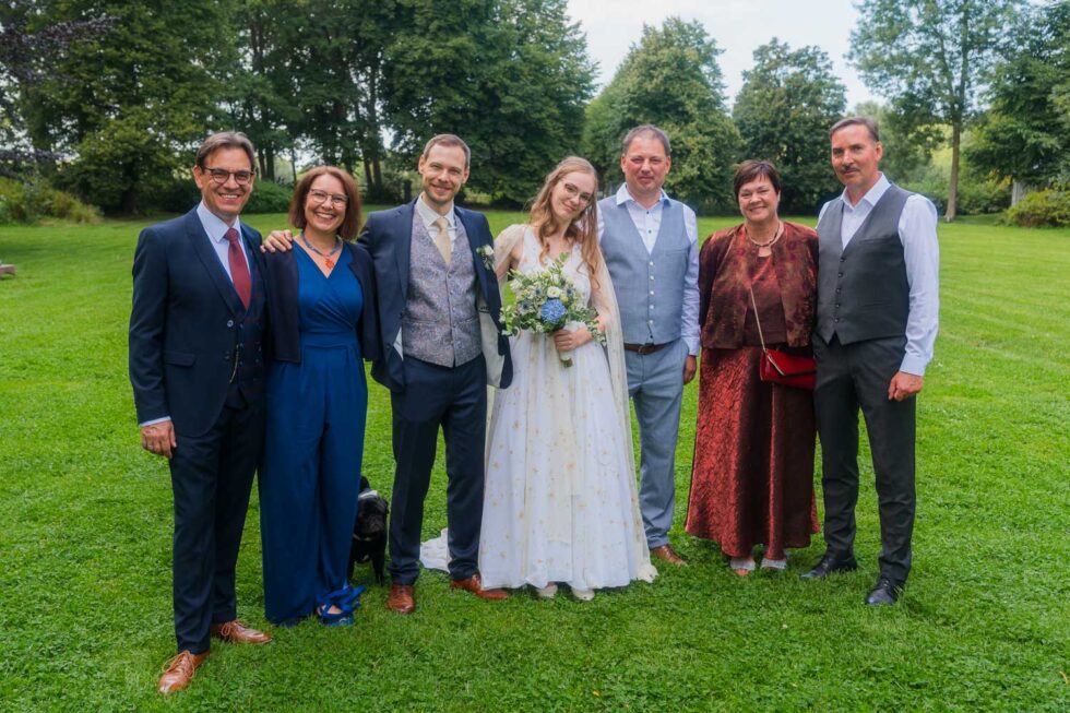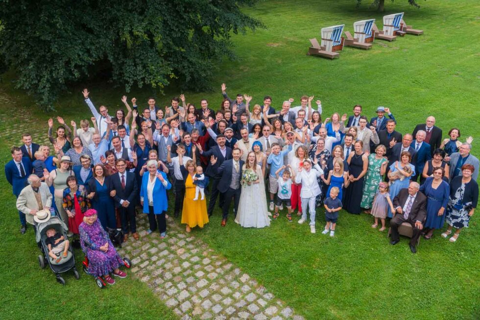 Auch das Gruppenfoto der Hochzeitsgesellschaft ist dadurch super geworden. Darüber hinaus freue ich mich sehr, dass sie auch auf die vielen kleinen Details geachtet hat, wie das Ankleiden, Deko, Speisen oder rührende Momente zwischen den Gästen. Wir sind jedes Mal aufs Neue sehr berührt, wenn wir die Fotos sehen und unendlich dankbar für ihre Arbeit.