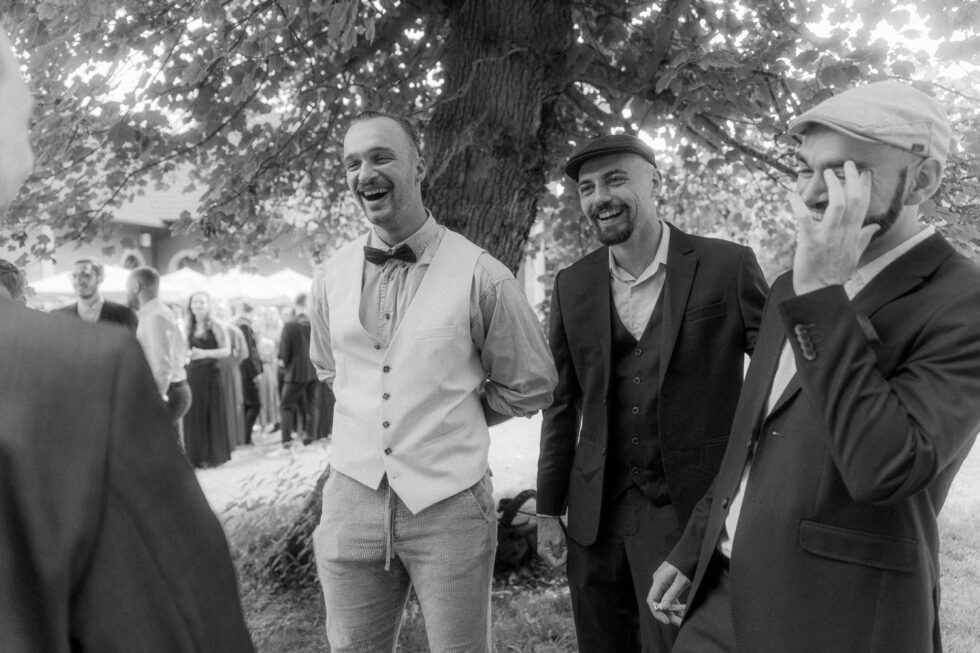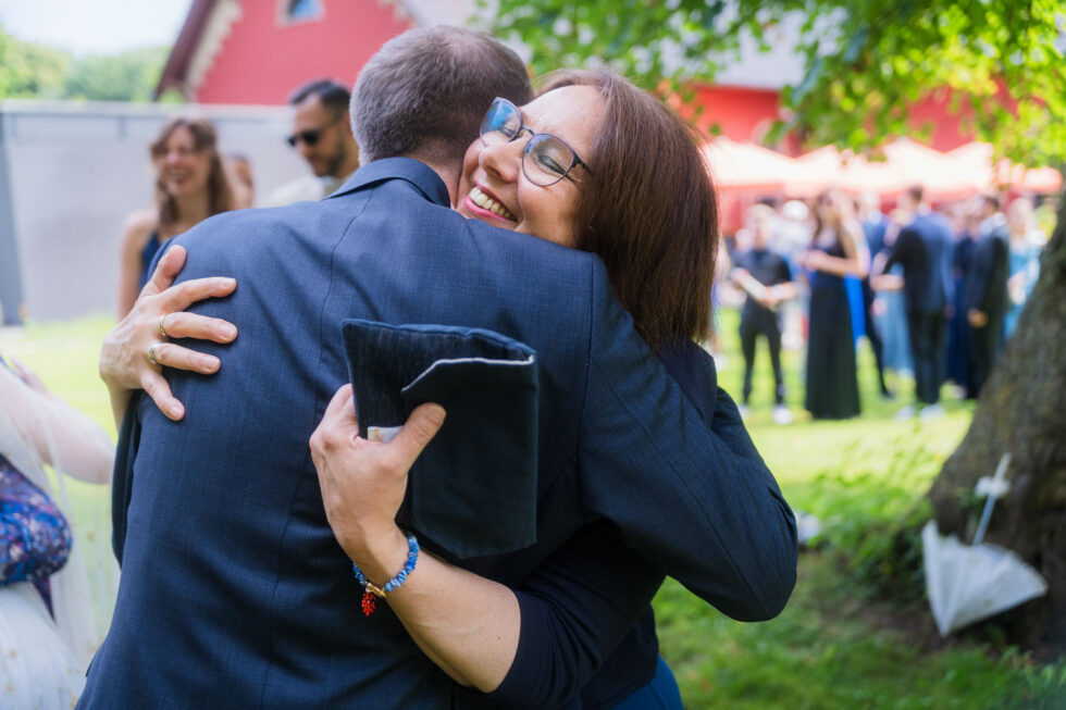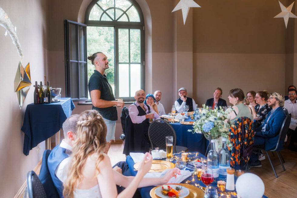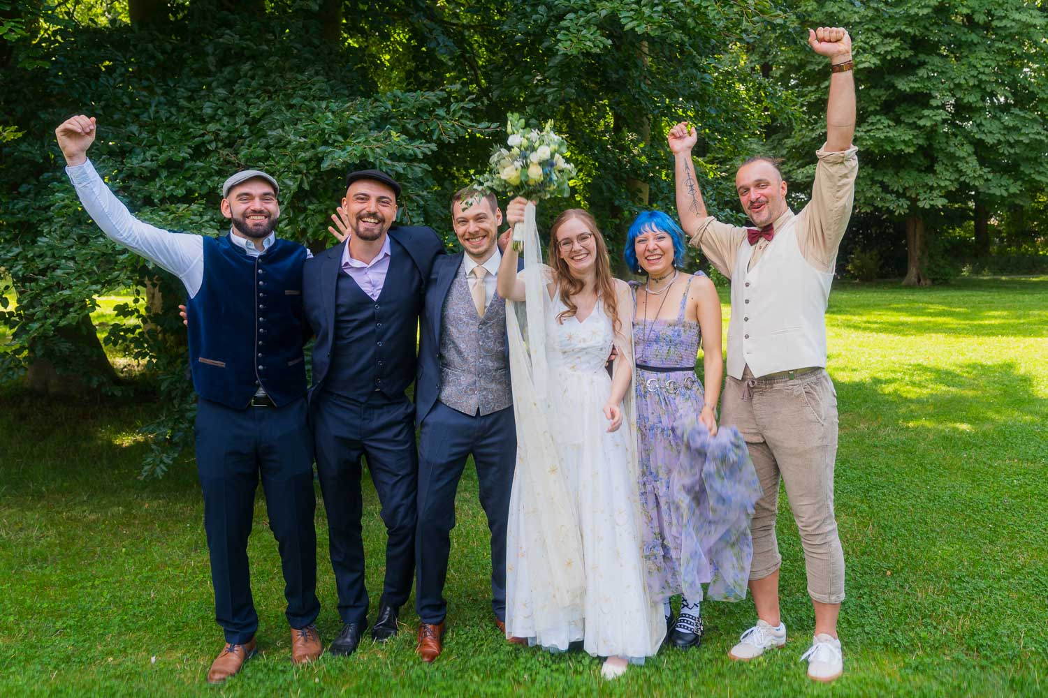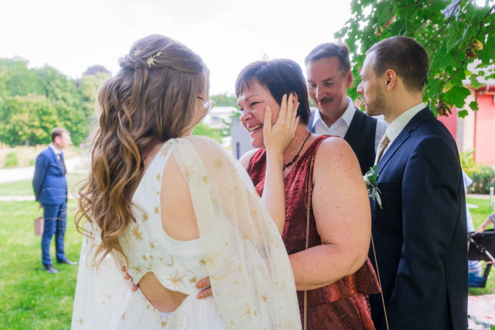Auch das Gruppenfoto der Hochzeitsgesellschaft ist dadurch super geworden. Darüber hinaus freue ich mich sehr, dass sie auch auf die vielen kleinen Details geachtet hat, wie das Ankleiden, Deko, Speisen oder rührende Momente zwischen den Gästen. Wir sind jedes Mal aufs Neue sehr berührt, wenn wir die Fotos sehen und unendlich dankbar für ihre Arbeit.