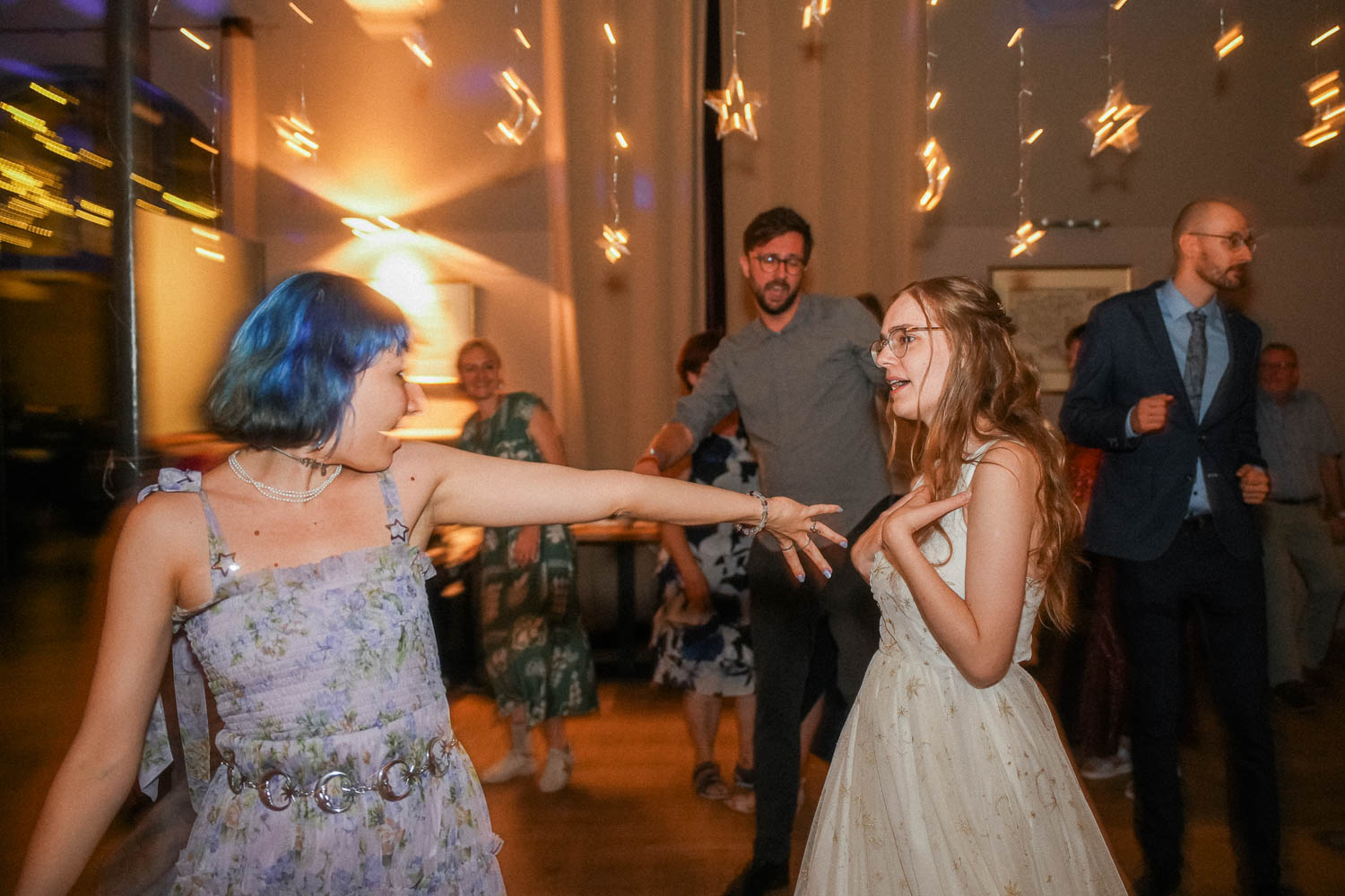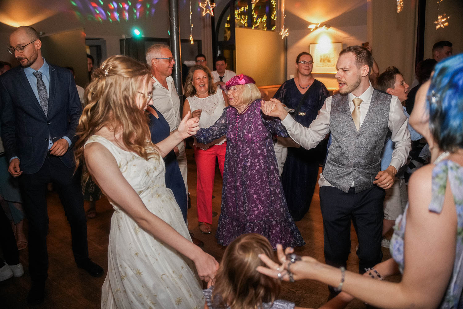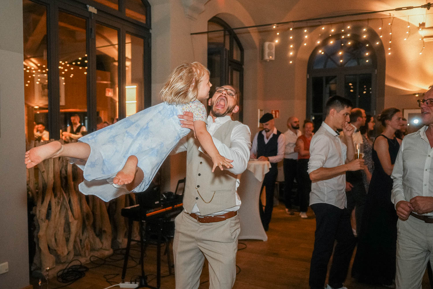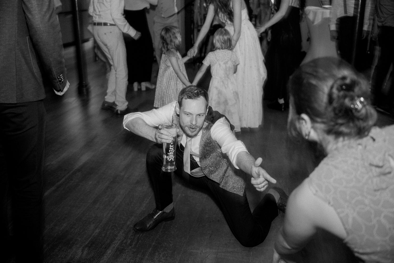 Total cool fand ich als Hochzeitsfotografin, dass die beiden zwar keine Zeit hatten einen Hochzeitstanz einzustudieren, aber einfach so die Tanzfläche gestürmt und unter großem Beifall mehr lustig als professionell die Party eröffnet haben. Und sie wurden von ihren Gästen auch nicht im Stich gelassen – sofort war die Tanzfläche gefüllt und Jung und Alt hatten einfach richtig Spaß.