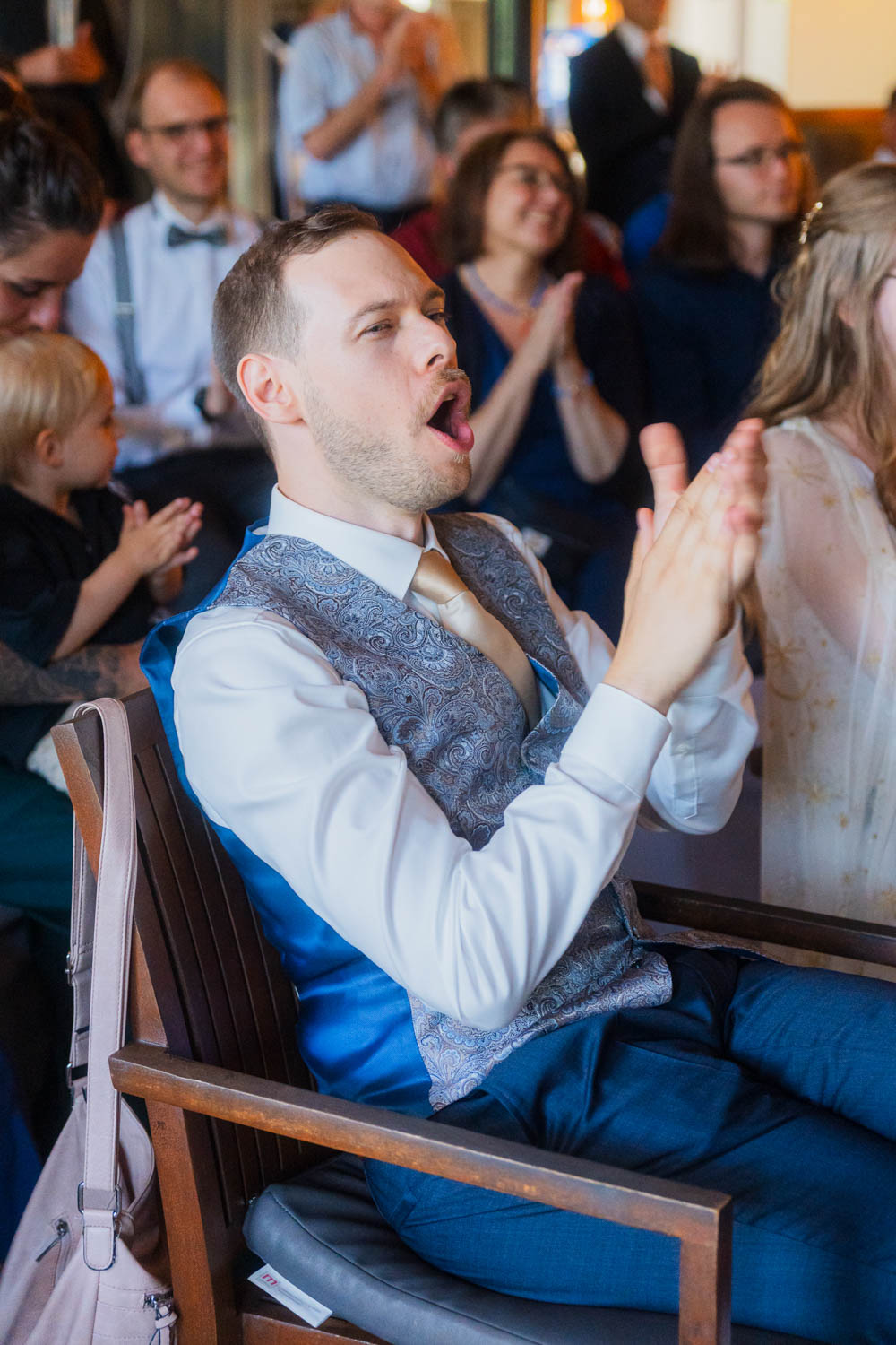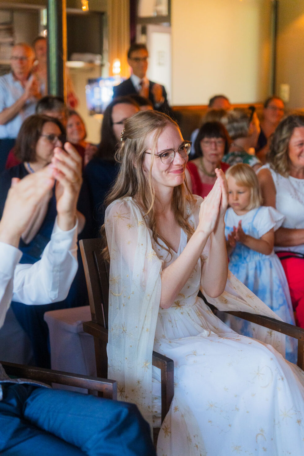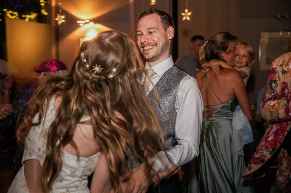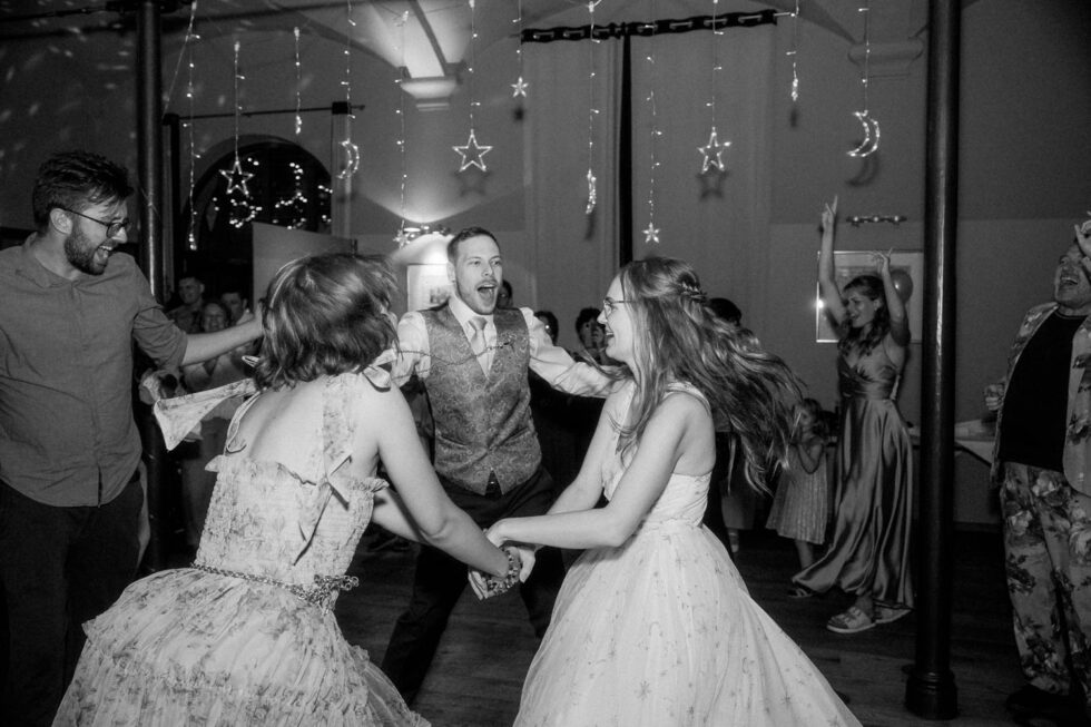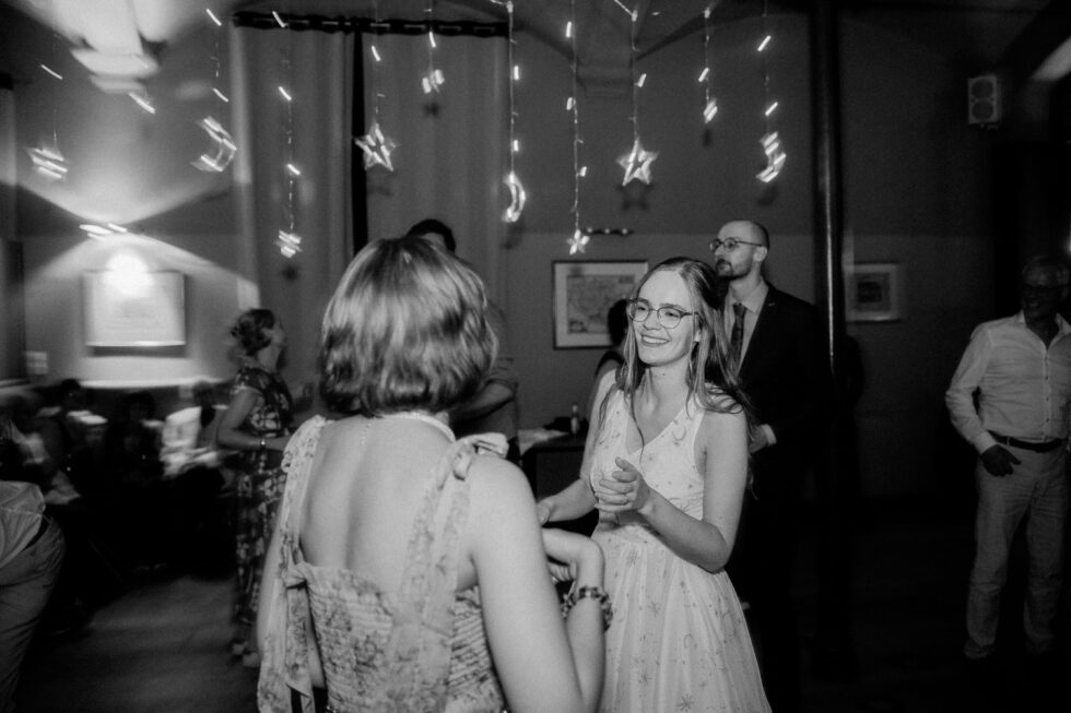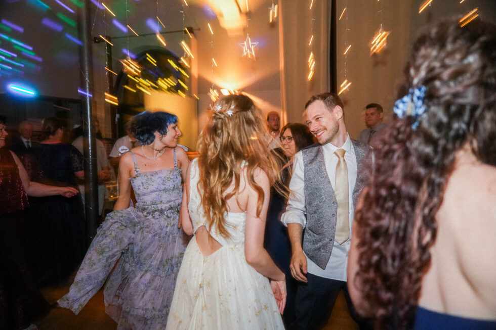 Total cool fand ich als Hochzeitsfotografin, dass die beiden zwar keine Zeit hatten einen Hochzeitstanz einzustudieren, aber einfach so die Tanzfläche gestürmt und unter großem Beifall mehr lustig als professionell die Party eröffnet haben. Und sie wurden von ihren Gästen auch nicht im Stich gelassen – sofort war die Tanzfläche gefüllt und Jung und Alt hatten einfach richtig Spaß.