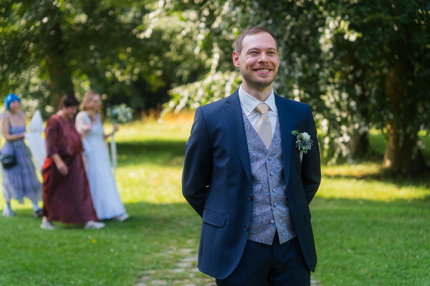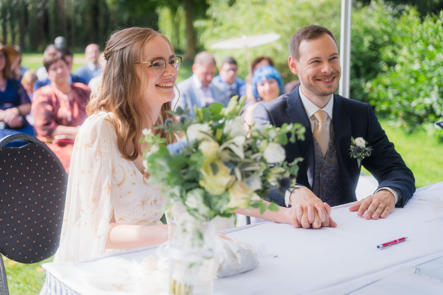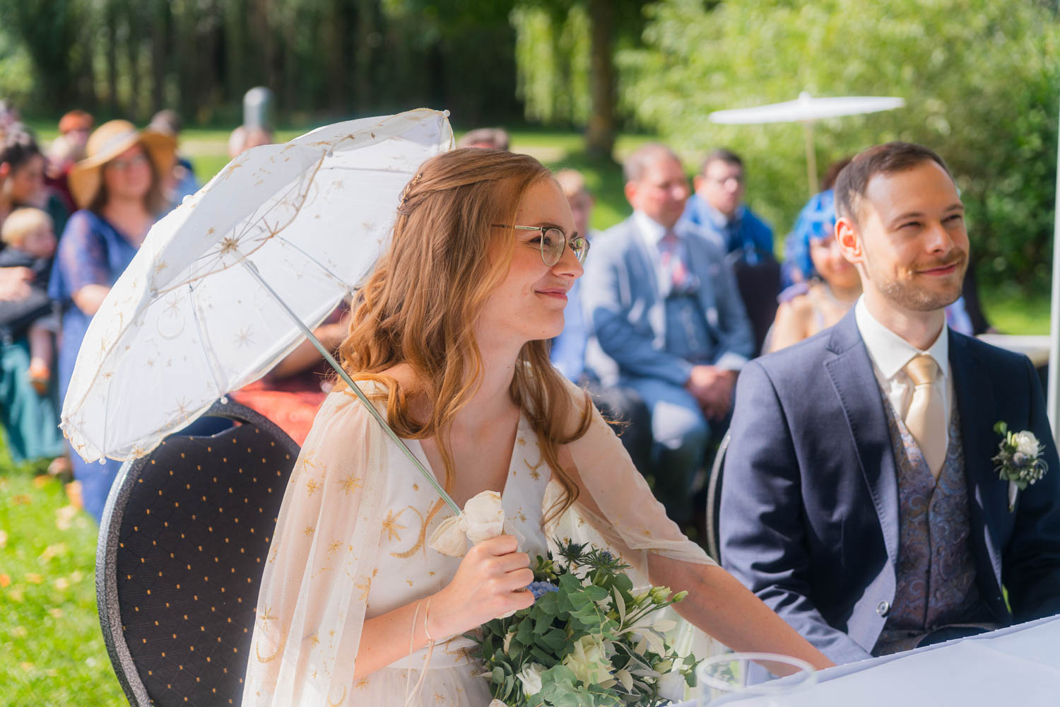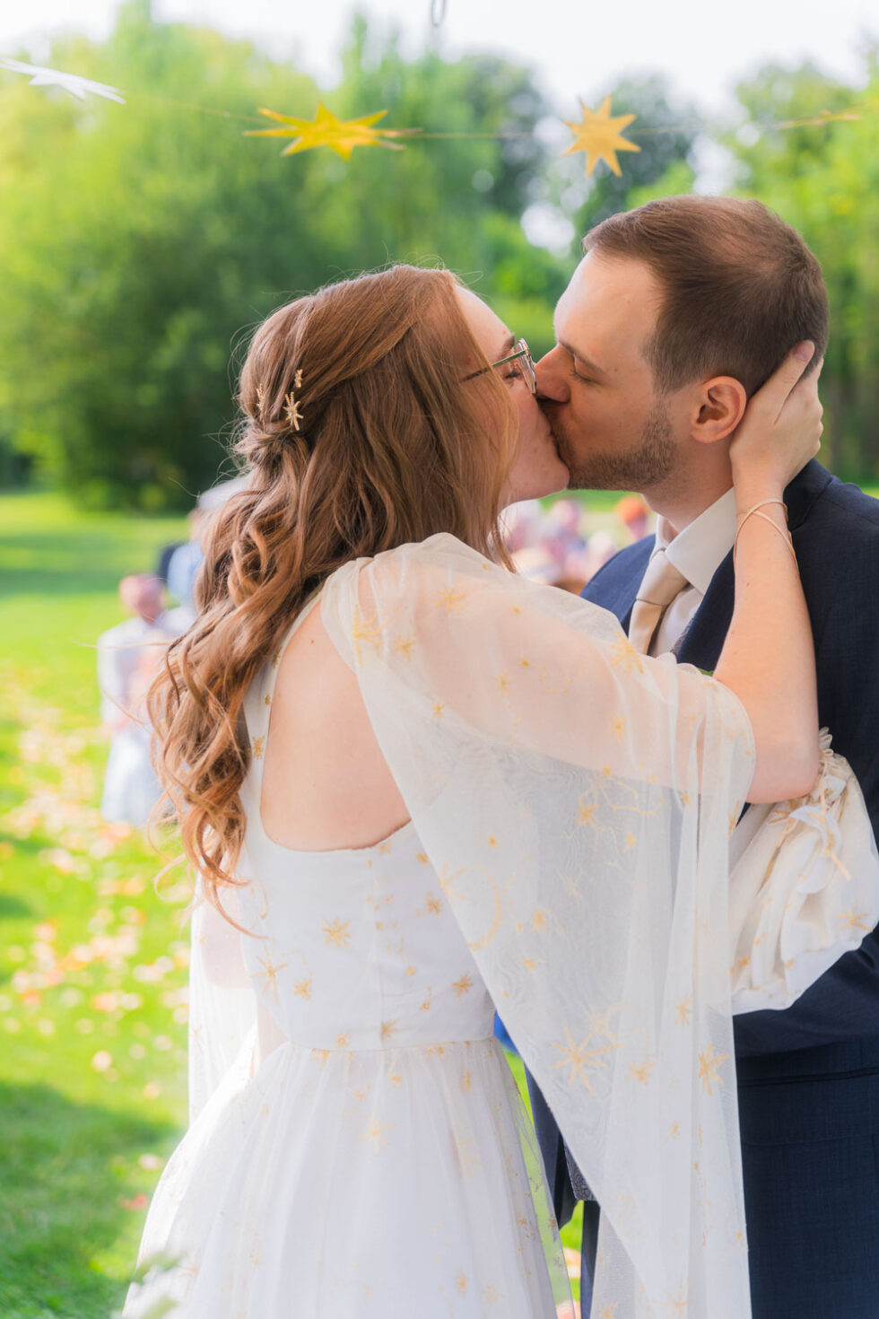 Die freie Trauung fand auf der Wiese direkt am Wasser statt – umgeben von Natur und begleitet von einer unglaublich entspannten Atmosphäre.