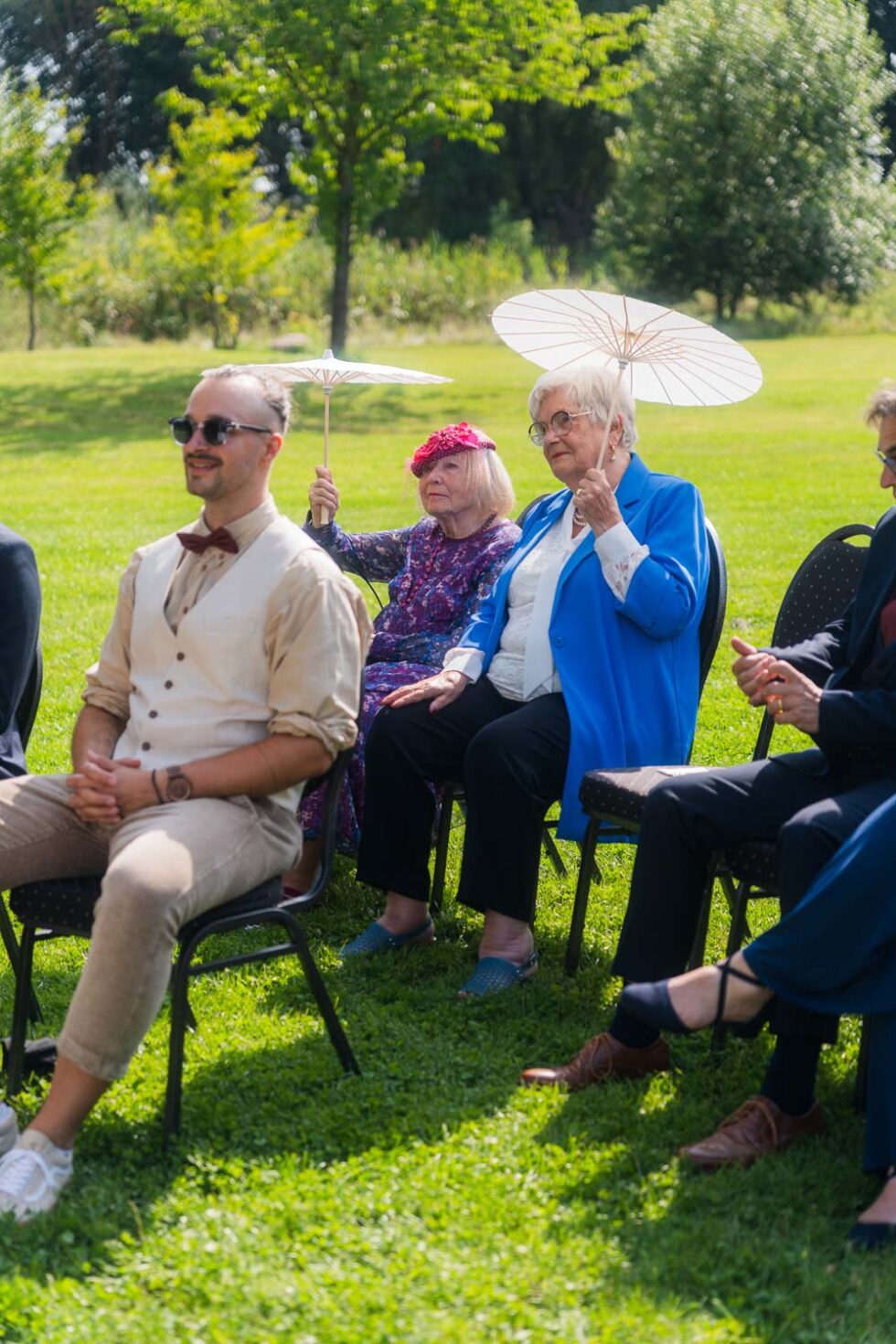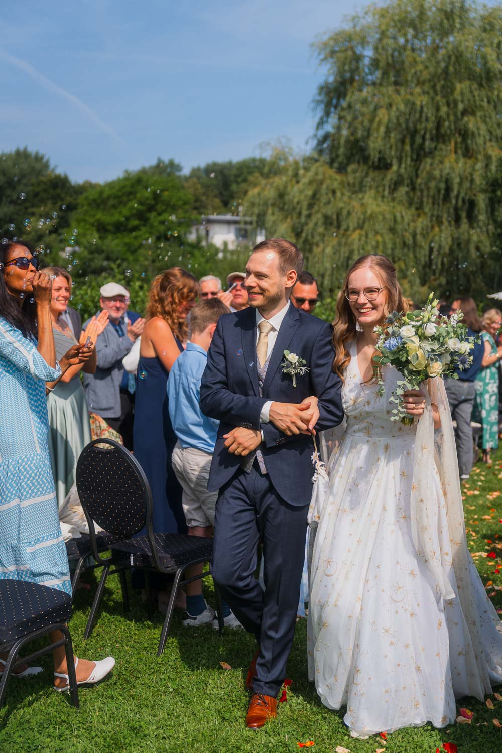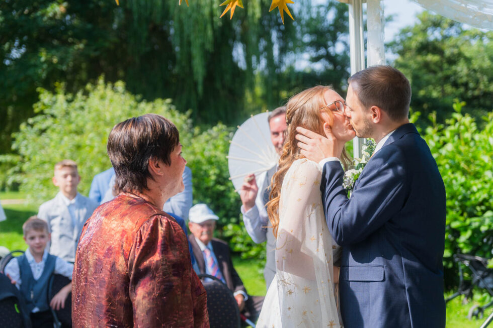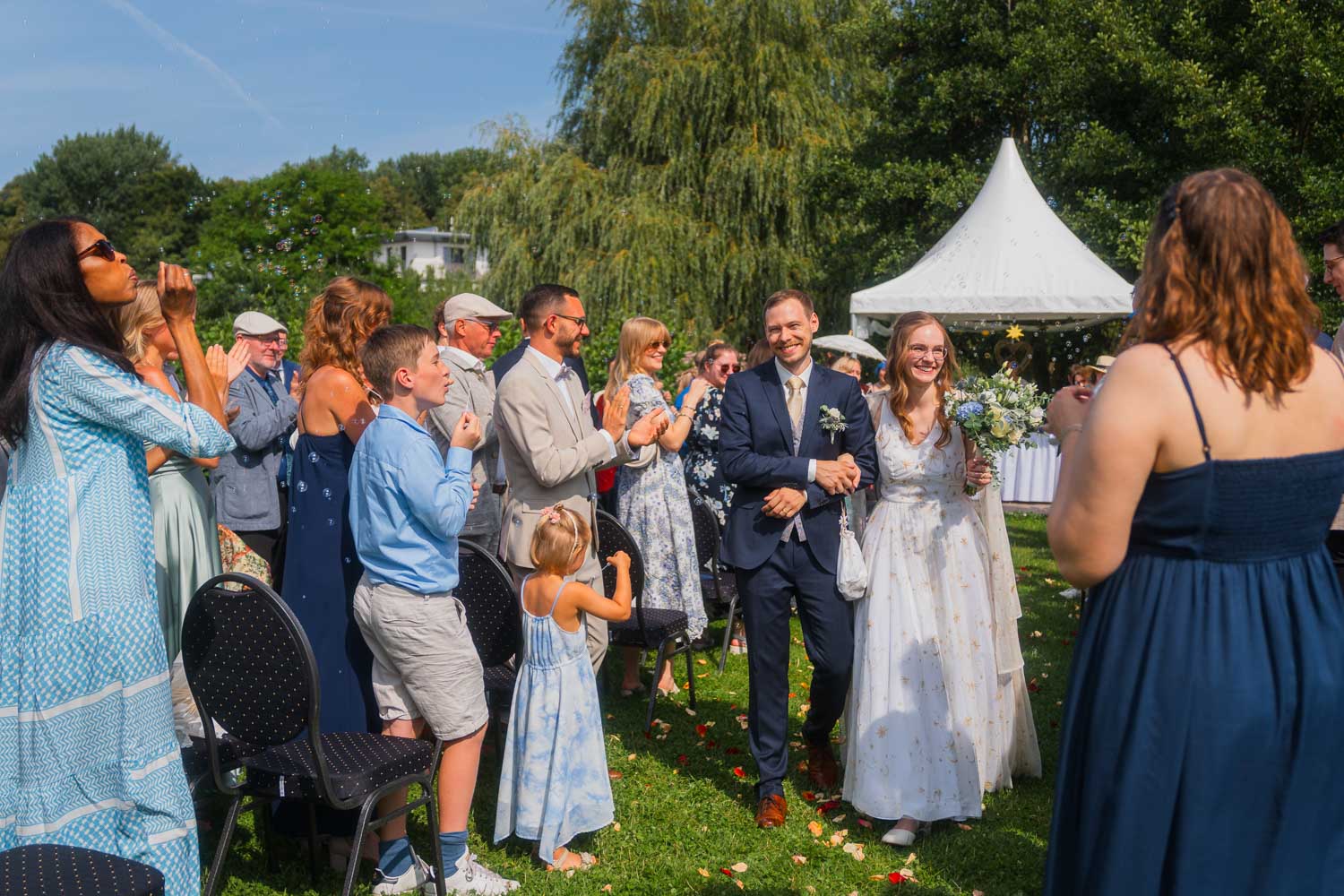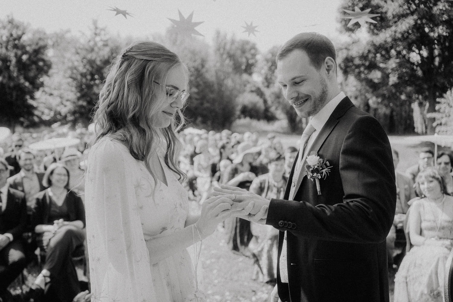Die freie Trauung fand auf der Wiese direkt am Wasser statt – umgeben von Natur und begleitet von einer unglaublich entspannten Atmosphäre.