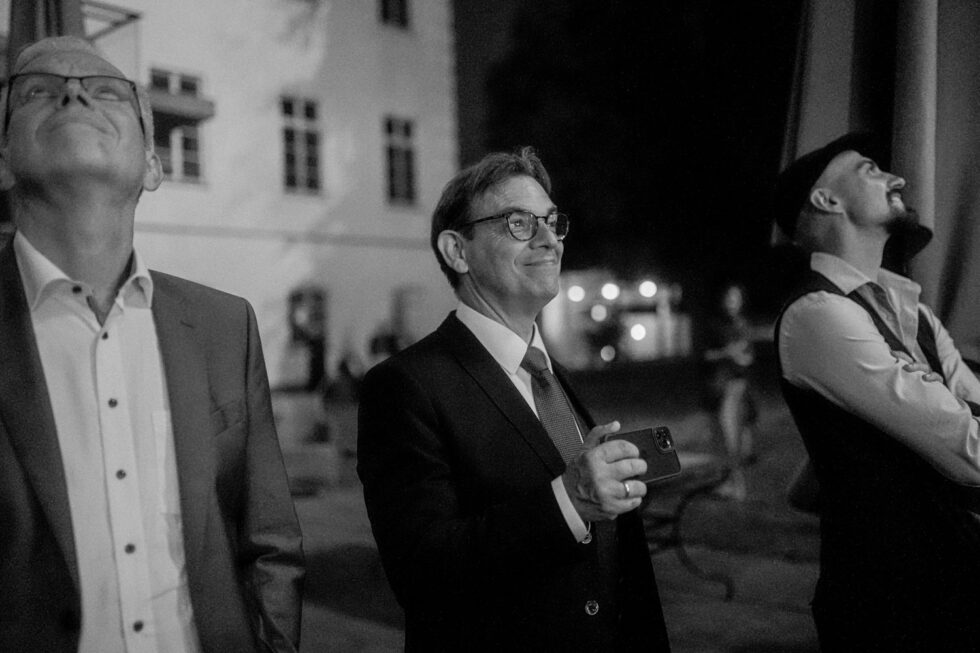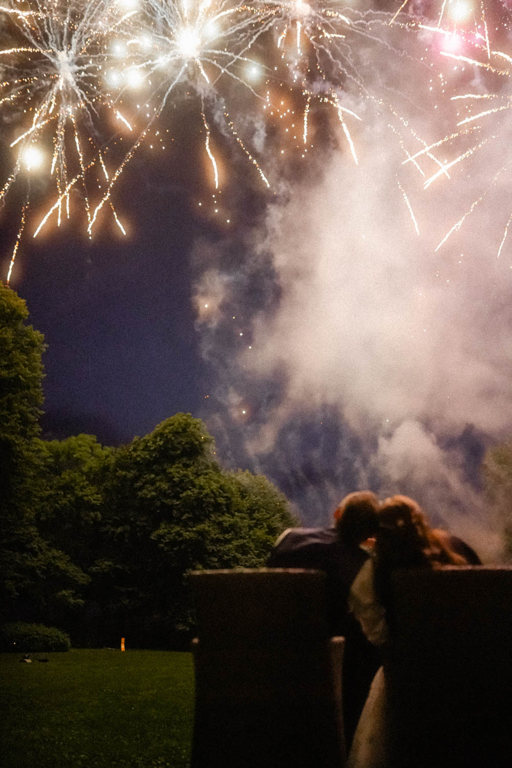 Manche Dinge erlebe auch ich als Hochzeitsfotograf nicht allzu oft und dazu gehört auf jeden Fall ein persönliches Feuerwerk. Das haben die Beiden geschenkt bekommen und meine Güte – ich weiß gar nicht, wie ich das in Worte fassen soll. Es war unglaublich schön! Lucy und Jan saßen ganz vorne während über der großen Wiese des Guts ein Feuerwerk extra für sie veranstaltet wurde. Alle Gäste schauten staunend in den Himmel und das komplette Personal des Schlossguts war ebenfalls draußen versammelt. Sowas erlebt man nicht alle Tage!