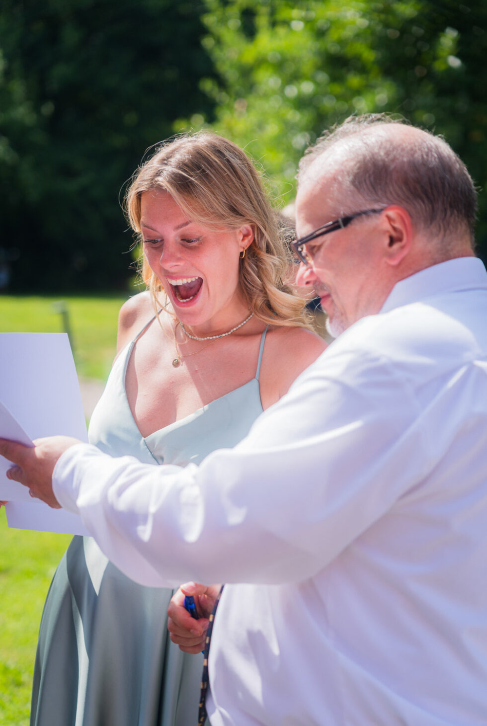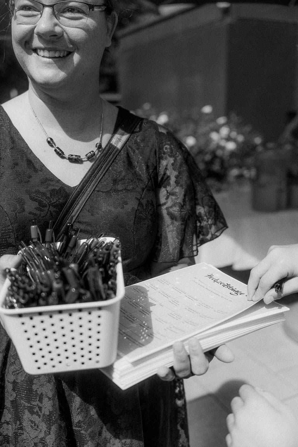 Nach der Trauung und den Gratulationen durften alle Gäste ihr Wissen über Lucy & Jan und die komplette Hochzeitsgesellschaft bei einem Quiz auf die Probe stellen. Das war eine tolle Möglichkeit, dass auch die Gäste sich untereinander besser kennenlernen konnten.