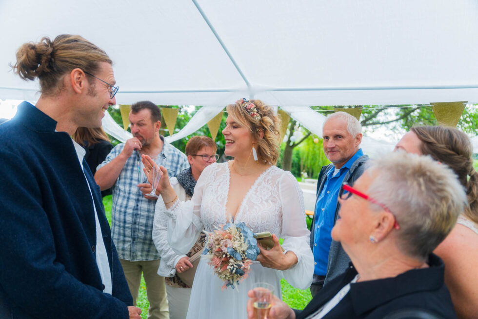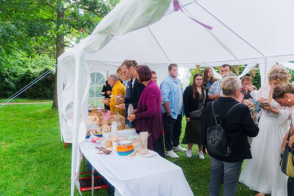 Das Miteinander war bei dieser Hochzeit so schön, alle haben sich beteiltigt, gemeinsam geschmückt und einen kleinen Wohlfühlort auf der Wiese aufgebaut. Das Essen wurde von allen Gästen gemeinsam beigesteuert und alle haben sich so wohlgefühlt in dieser ungezwungenen Atmosphäre.