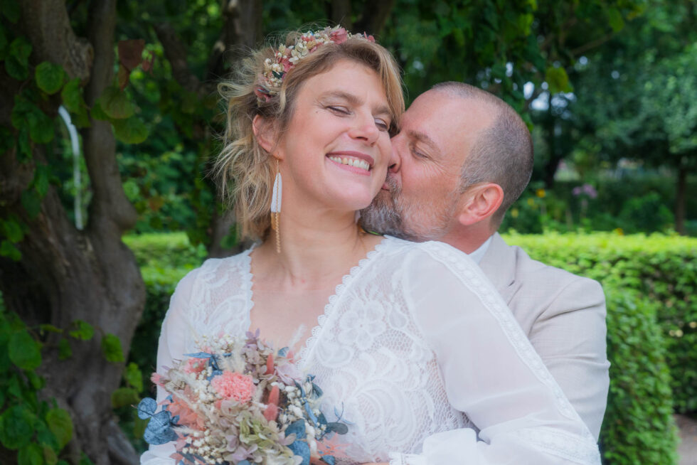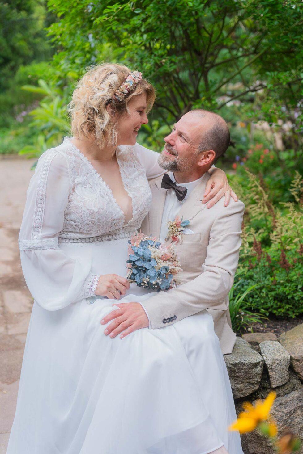 Zwischen all dem leckeren selbstgebackenen Kuchen, Fingerfood, schönen Gesprächen und dem Toben der vielen kleinen Gäste durfte ich als Hochzeitsfotografin Jenni & Jan kurz entführen an einen kleinen ruhigen Ort – einen wunderschönen Garten, der sich perfekt für die Brautpaarfotos der beiden angeboten hat.
