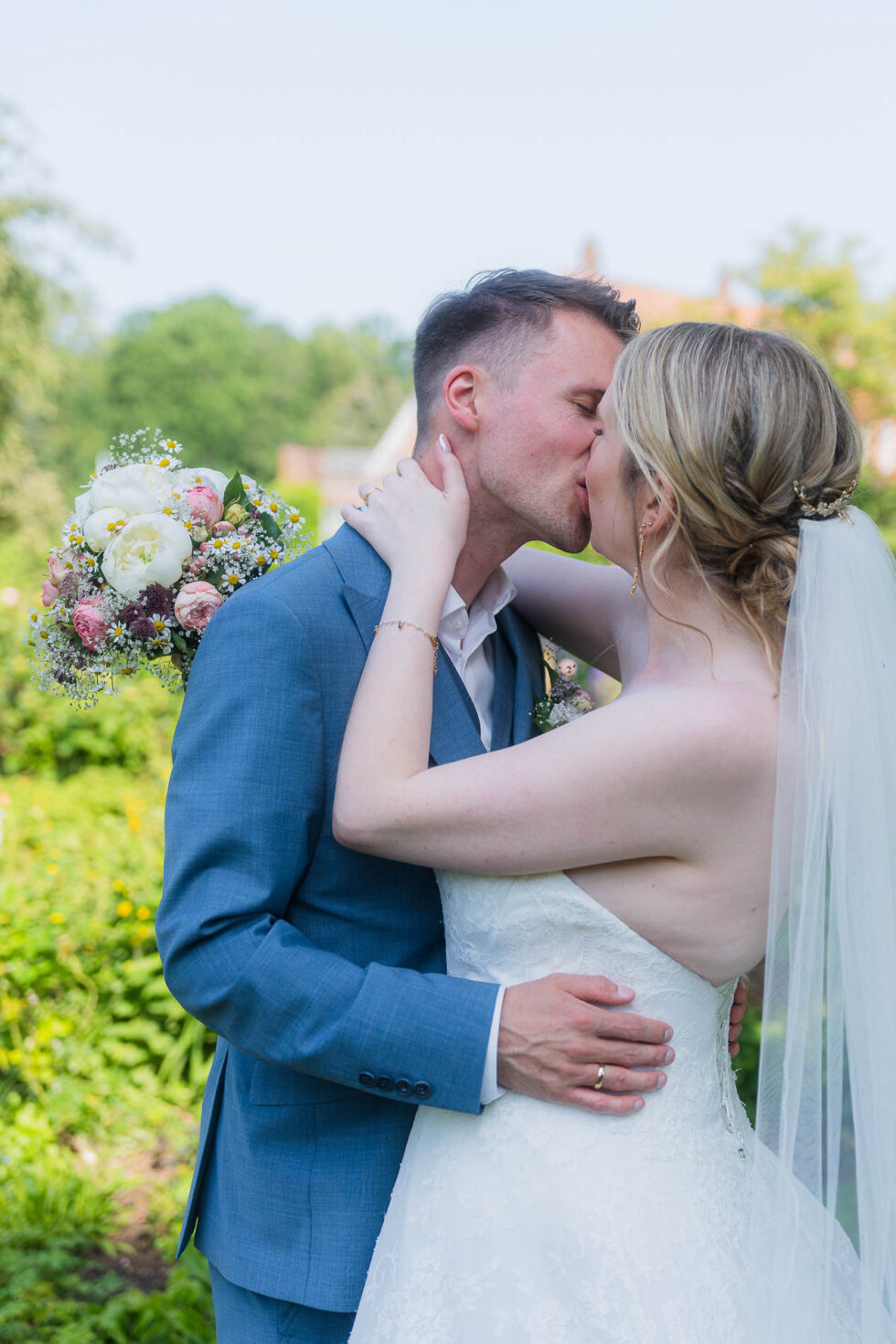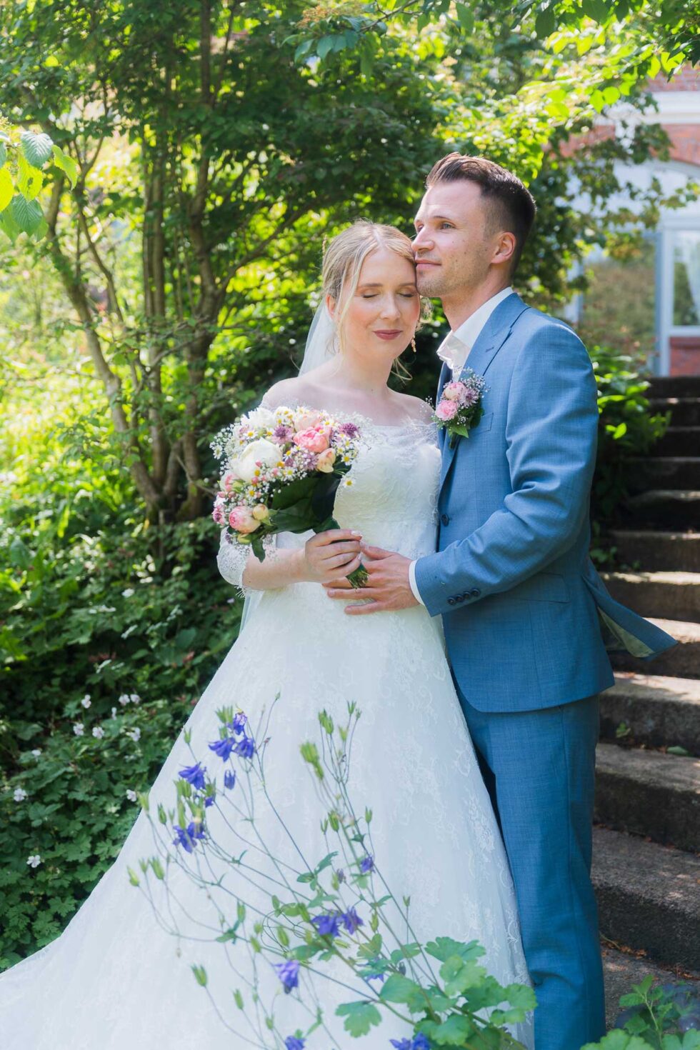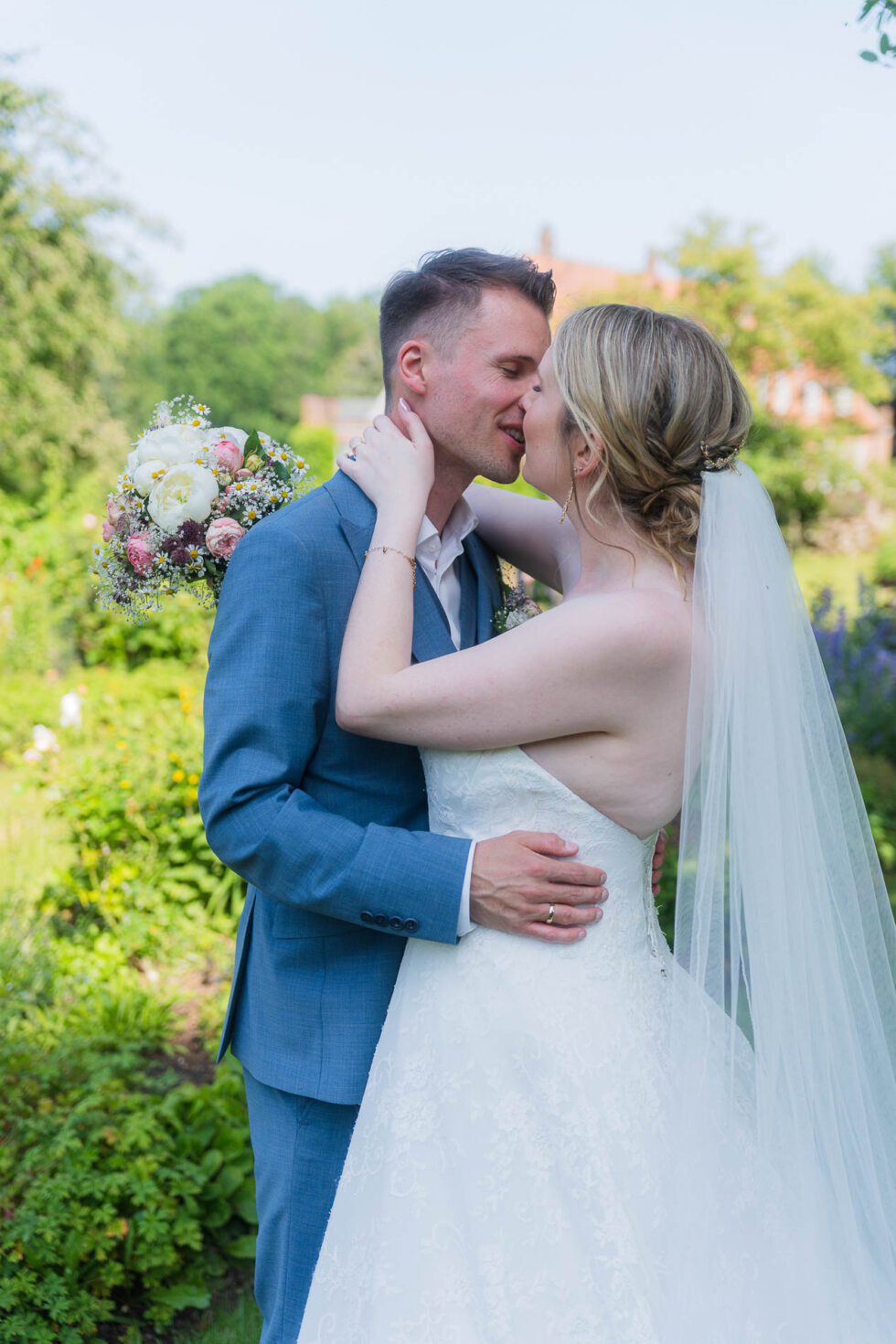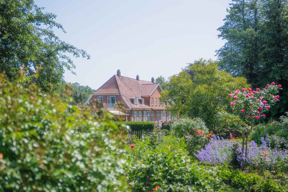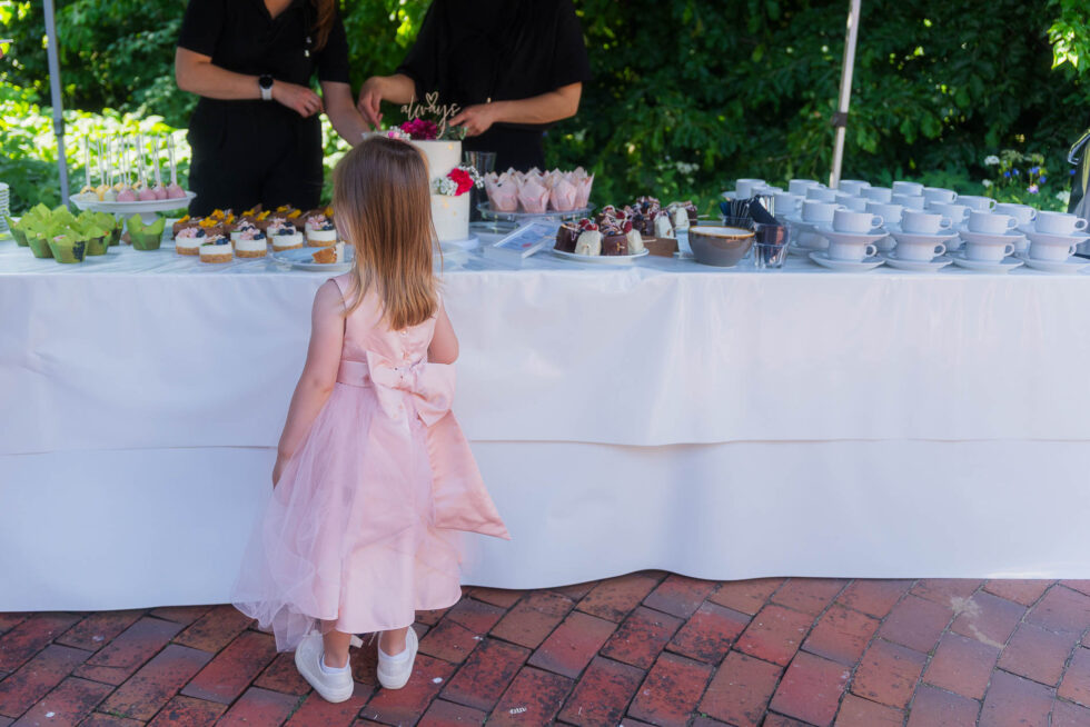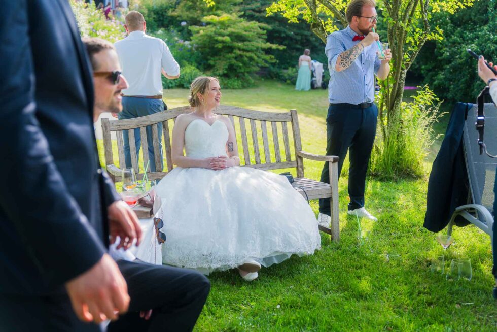 Der ganze Sweettable sah wirklich fantastisch aus und als dann auch Kathi & Christian selbst ganz satt waren, haben wir uns noch einmal aufgemacht zum Rosengarten. Unglaublich, wie viele schöne Ecken es auf dem Gut in Schleswig-Holstein gab! Hier im Garten haben wir nochmal eine kleine gemütliche Brautpaarfoto-Session gemacht bevor es zurück zur Gesellschaft ging.