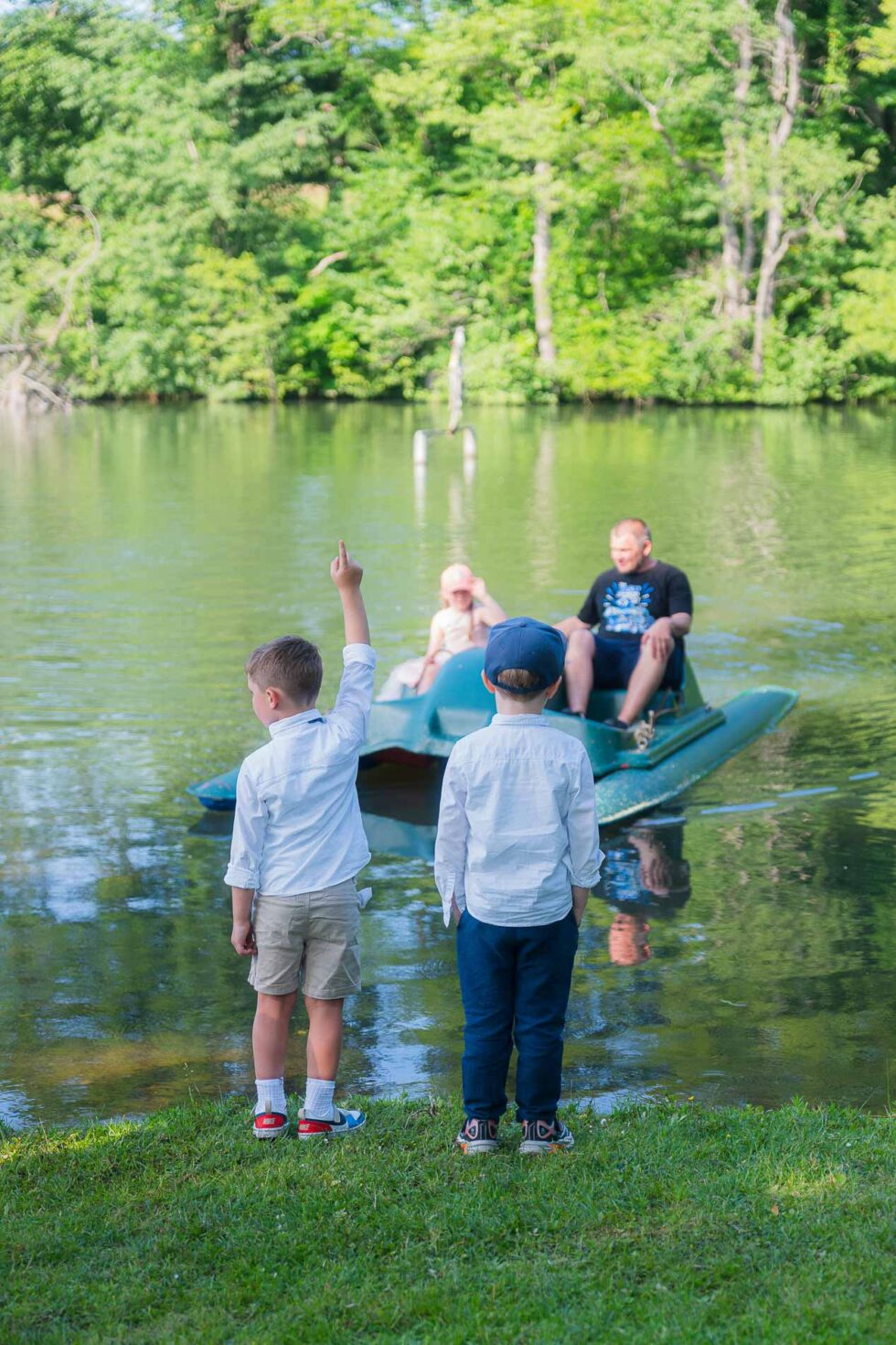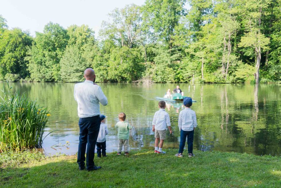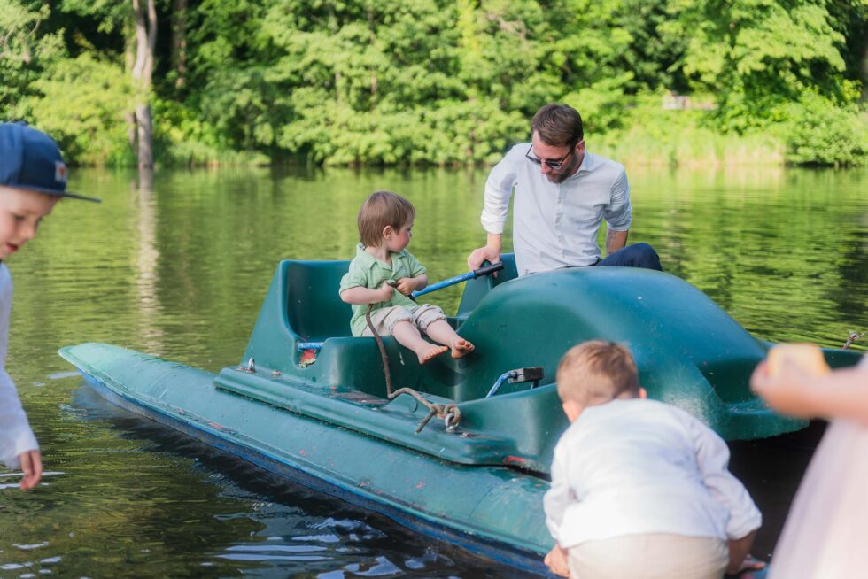Beim Dosenwerfen waren dann sogar eher die Herren der Gesellschaft mit ganz viel Eifer dabei und als die Kids das alte Tretboot am Ufer des Sees entdeckt hatten, gab es auch hier kein Halten mehr.