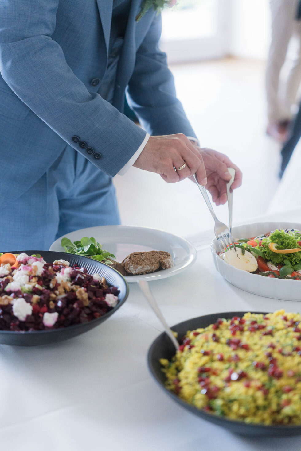 Zum Abendessen haben sich alle wieder im Saal versammelt, es gab eine kleine Rede von Kathi & Christian und schon wurde das Buffet gestürmt!