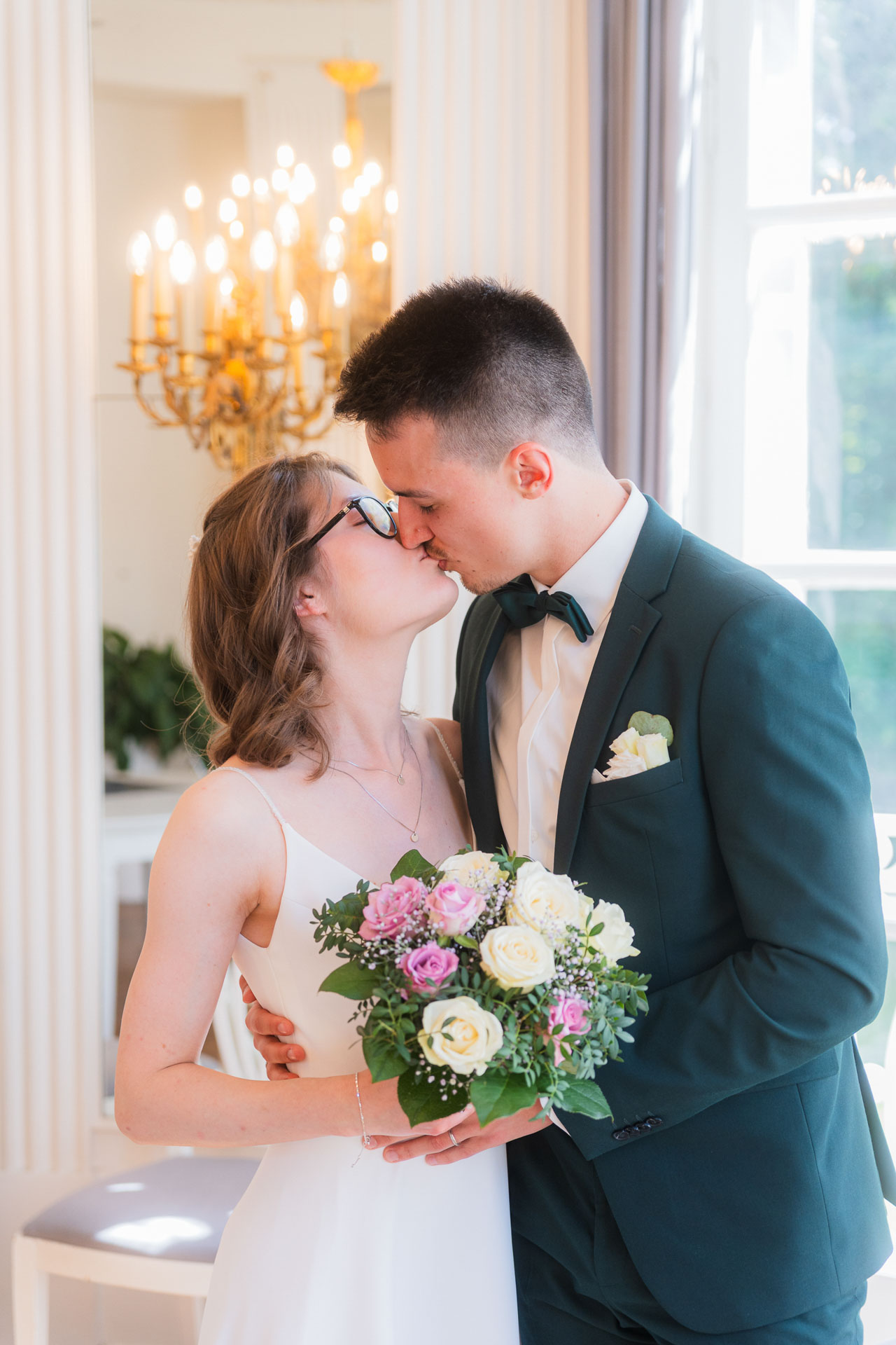 Die standesamtliche Trauung fand in der wunderschönen Lindsche Villa statt – einem der charmantesten Trauorte in Lübeck. Das historische Trauzimmer strahlt eine besondere Ruhe aus. Hohe Decken, klassische Details, warmes Licht – ein Raum, der den Moment trägt, ohne sich in den Vordergrund zu drängen. Als Melanie & Lukas vorne standen, wurde es still. Ein paar leise Worte, ein Lächeln, ein kurzer Blick zueinander.