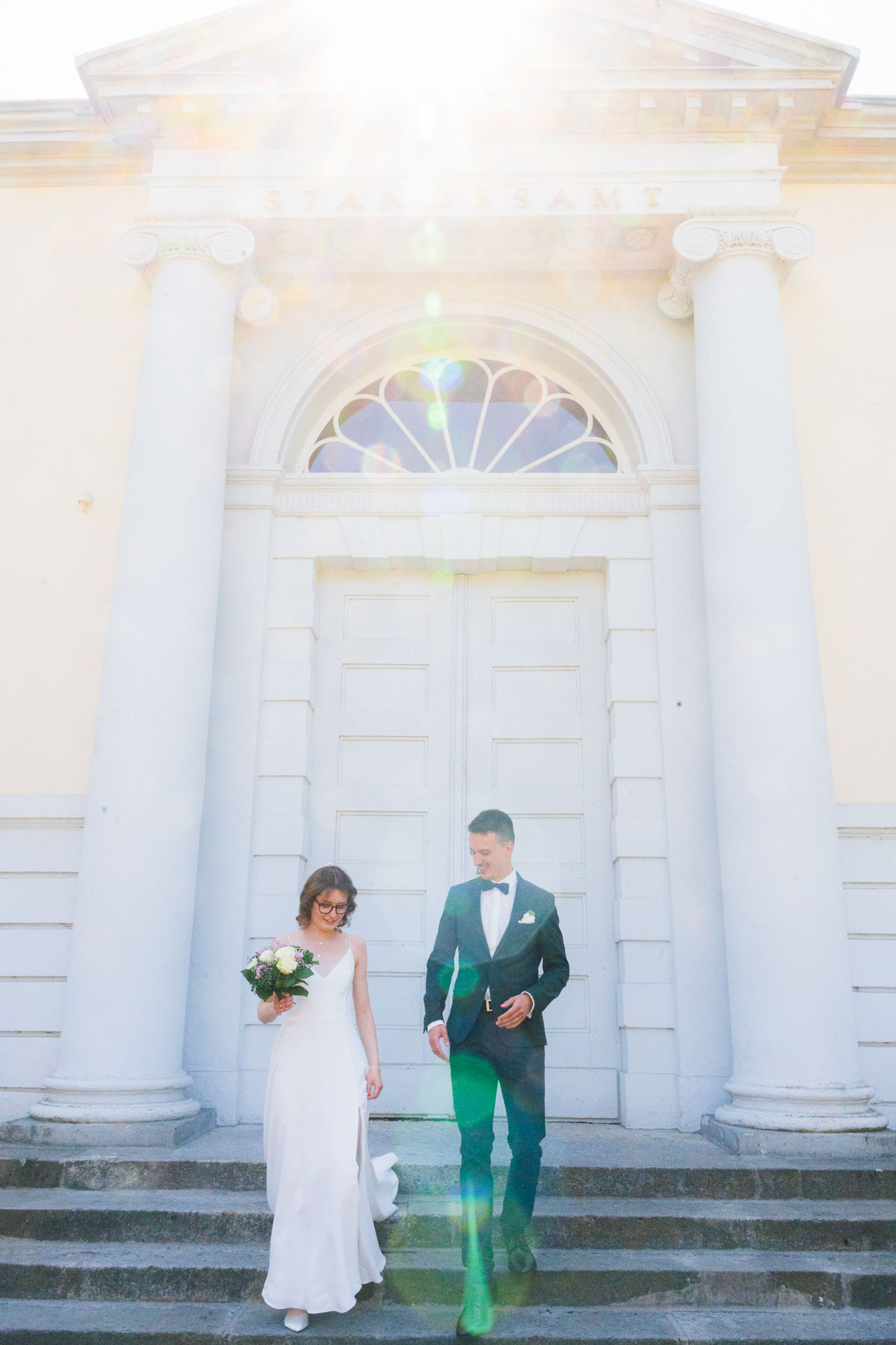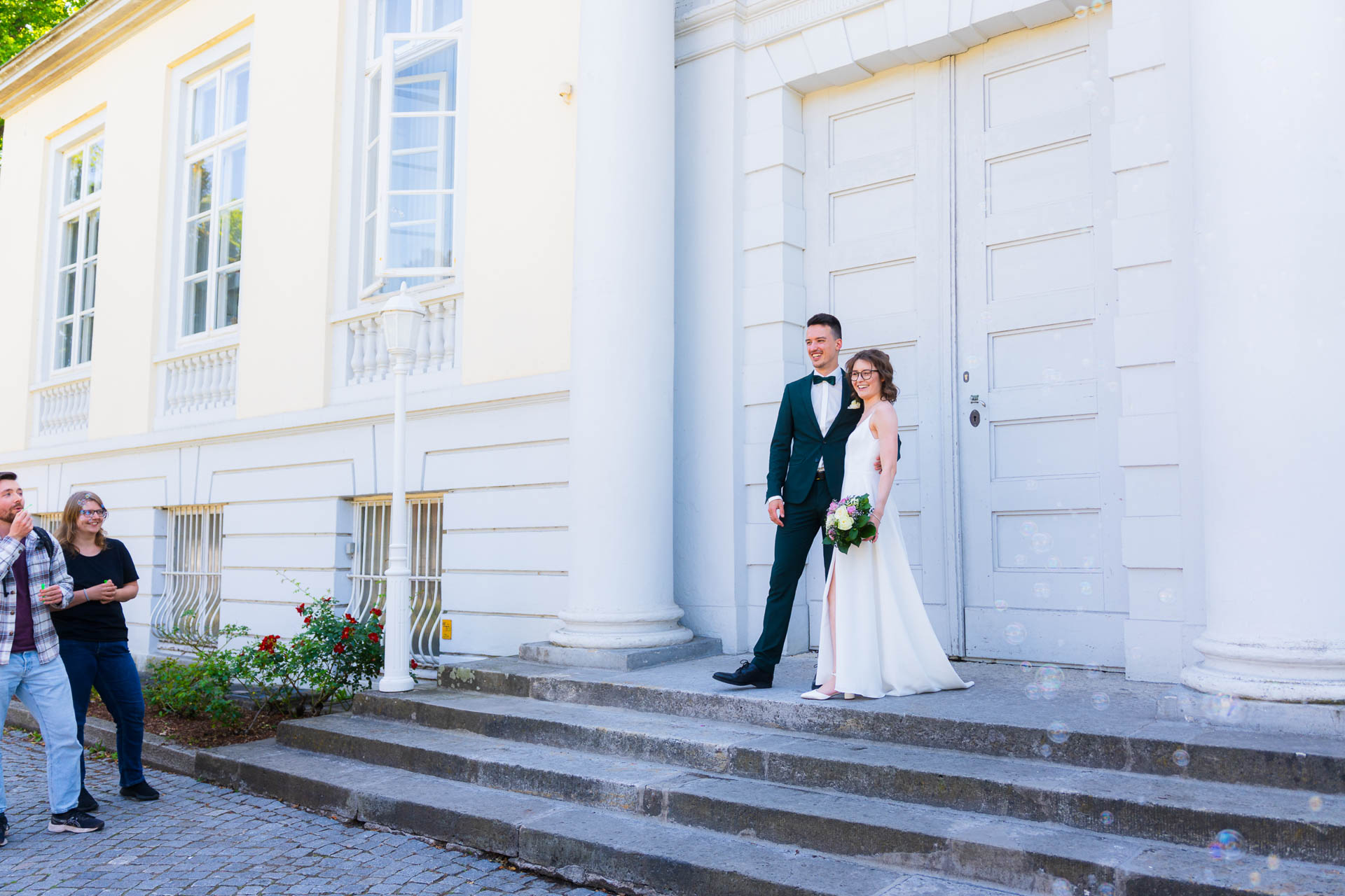 Auszug, Sekt & erste Glückwünsche im Garten des Standesamts
